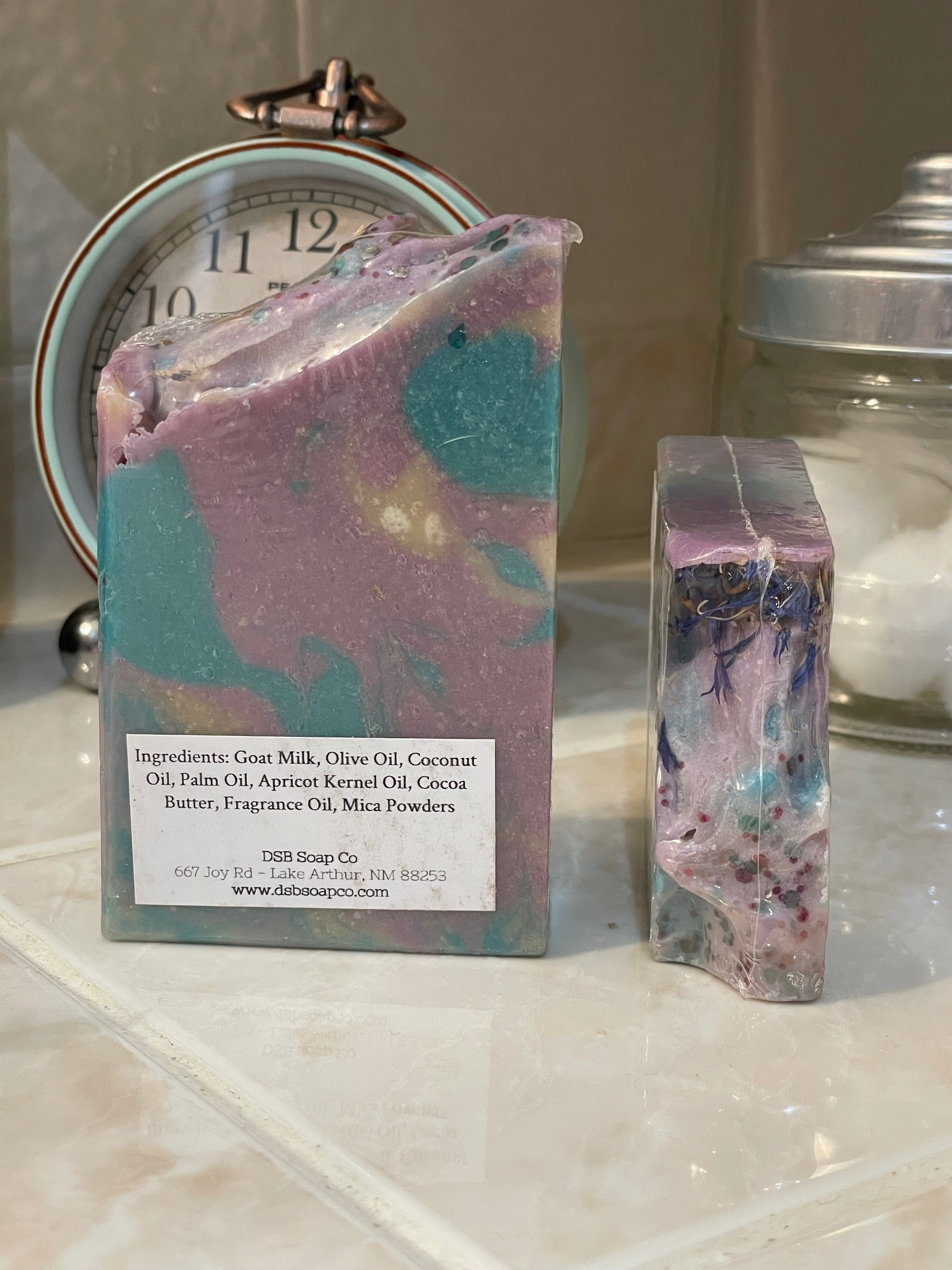 This soap is colorful and smells good all at the same time! Made with a lavender fragrance oil this scent captures the calming essence of lavender, with a perfectly balanced and subtle aroma that's not overly sweet or herbal. Topped with blue cornflowers and a little bit of glitter for a feminine touch!